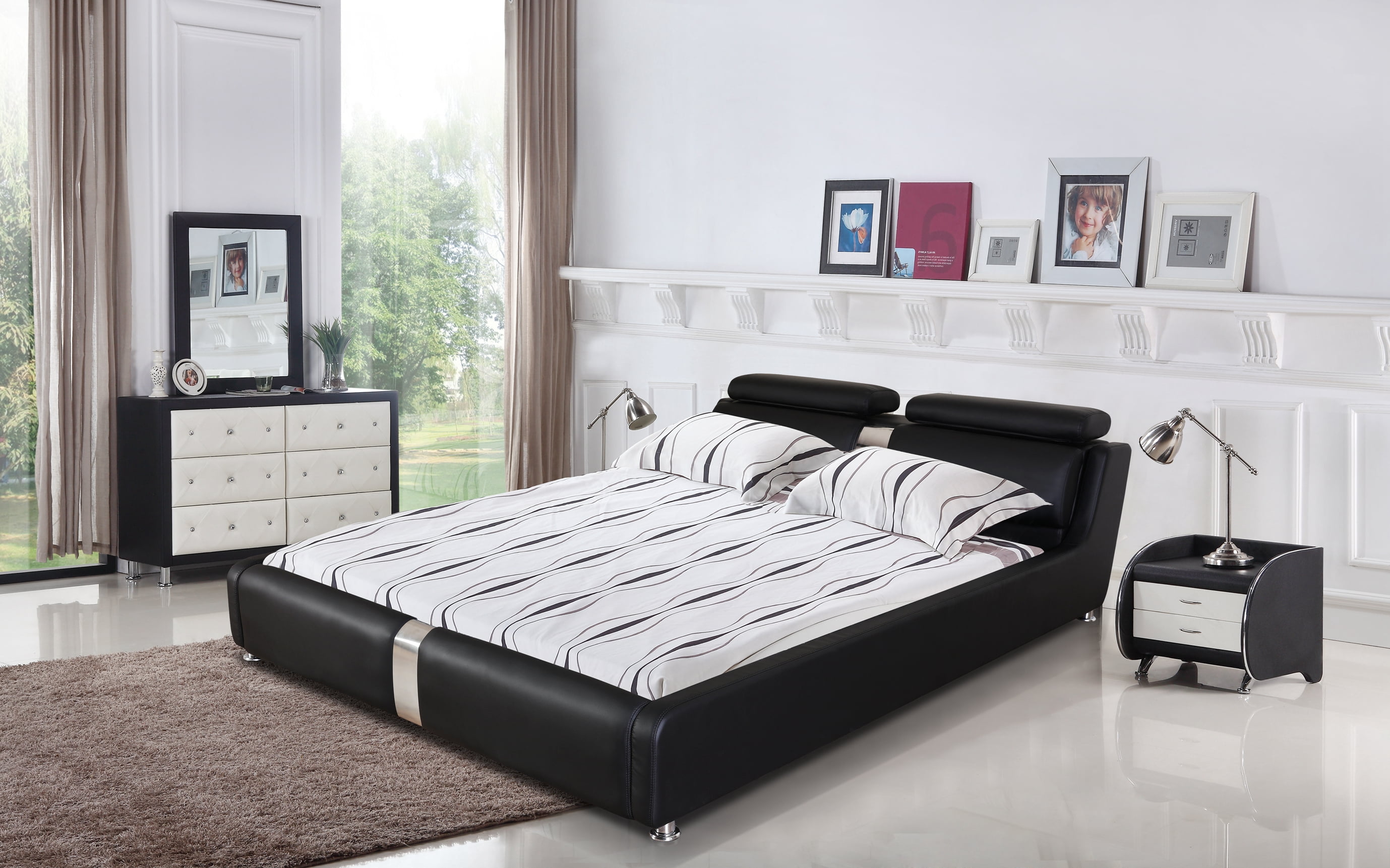 Citta Queen Bed In Black Leather Look With Attached Adjustable