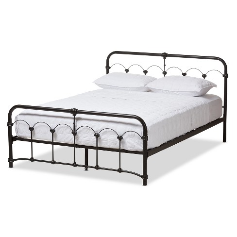Belinda Chic Iron Metal Platform Bed Queen Antique Dark Bronze