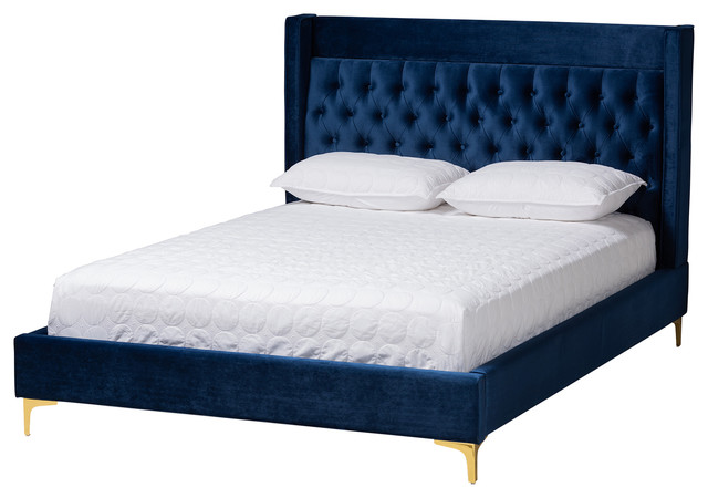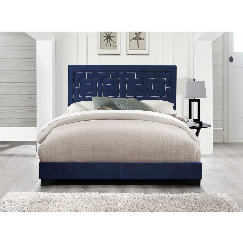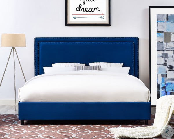 Baxton studio navy blue velvet upholstered queen size wood platform bed frame. Tristan blue velvet platform bed frame king size nailhead trim. Buy tov furniture the finley collection contemporary style velvet upholstered button tufted wingback bed with nailhead trim king size blue.