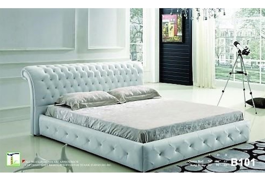 Titanic Furniture B100 White Leatherette Diamond Tufted Low