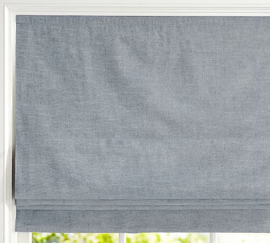 Emery Linen Cotton Cordless Roman Shade 32 X 64 Blue Dawn