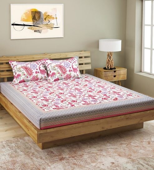 Buy 100 Cotton 210tc King Size Bedsheet With 2 Pillow Covers By