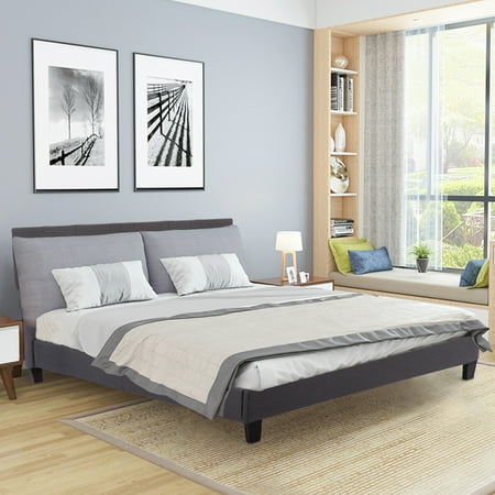 Upholstered Platform Bed Queen Panel Bed Frame Gray Linen Heavy