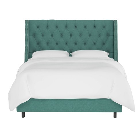 Queen Diamond Tufted Nail Button Wingback Bed Linen Laguna