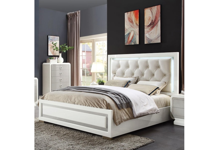 Athens White Lacquer Platform Bed With Led Lighting
