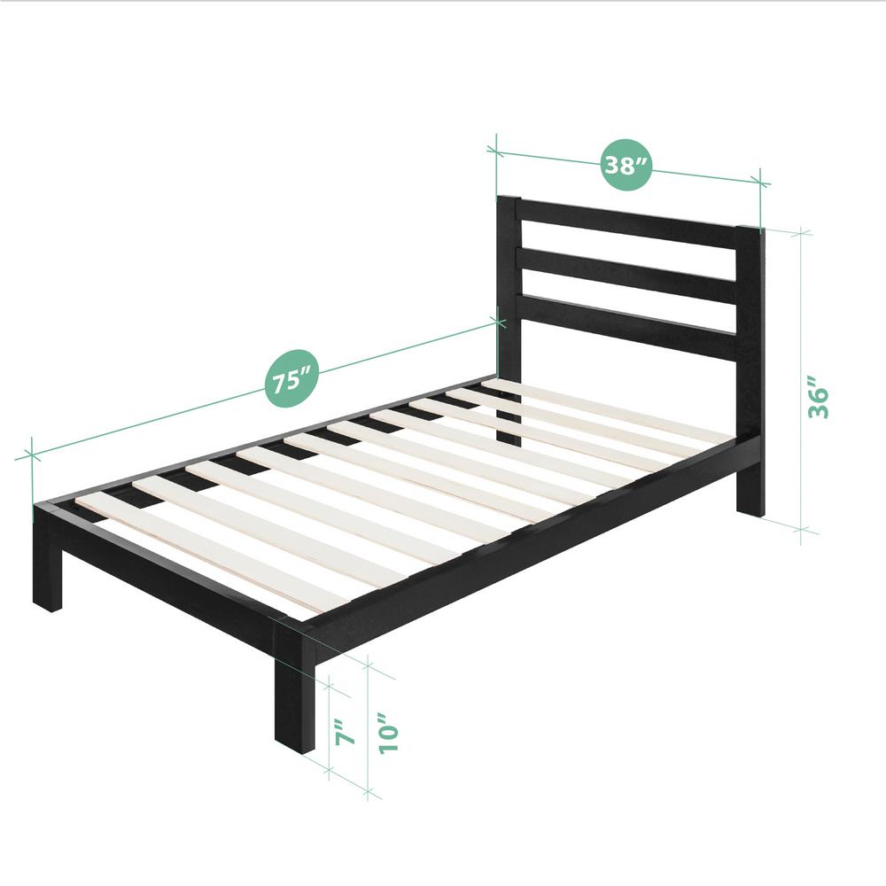 Modern Twin Head Board Platform Bed 7in Metal Frame Wood Slat