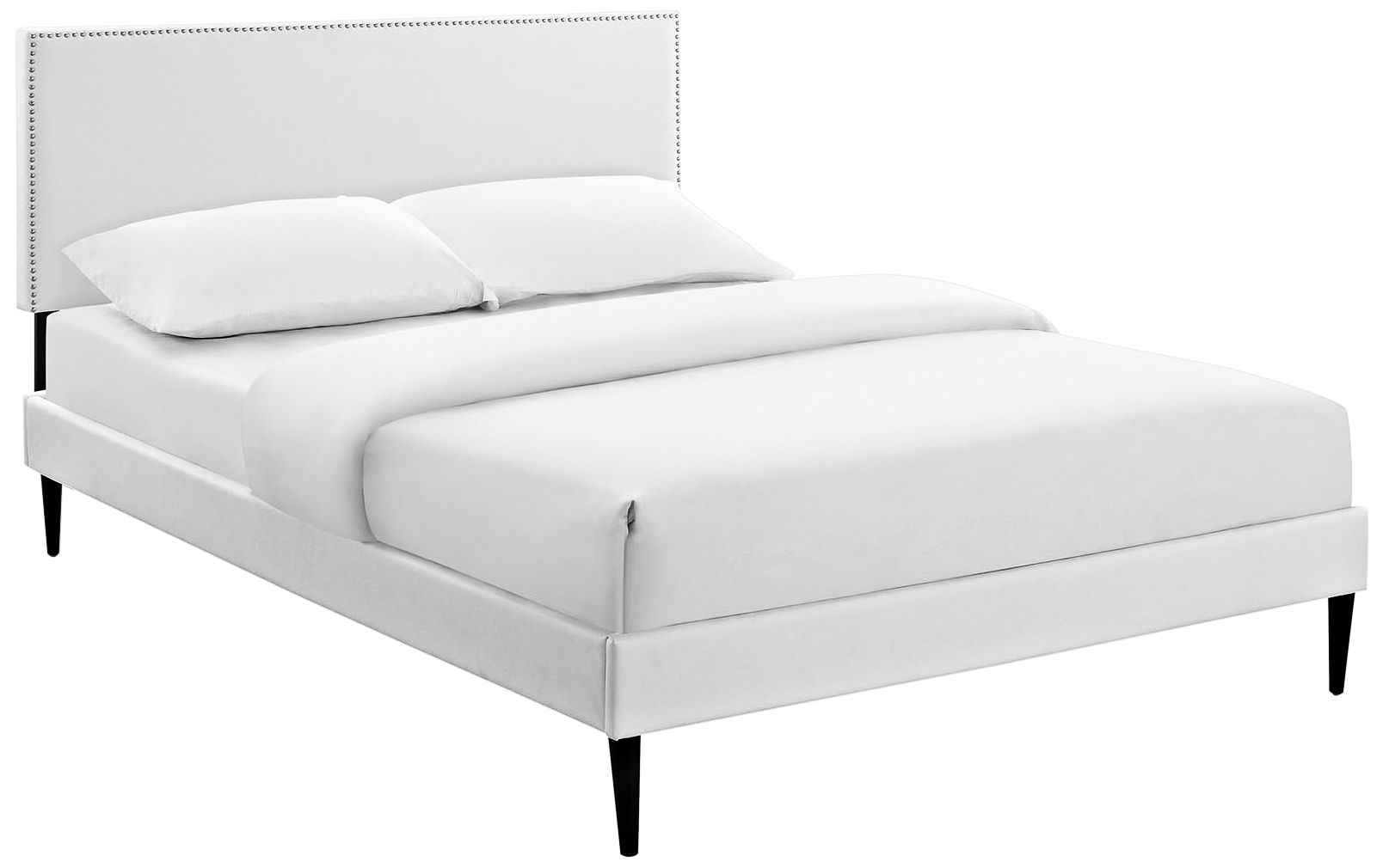 Phoebe White Vinyl Platform Bed With Round Tapered Legs 34r47