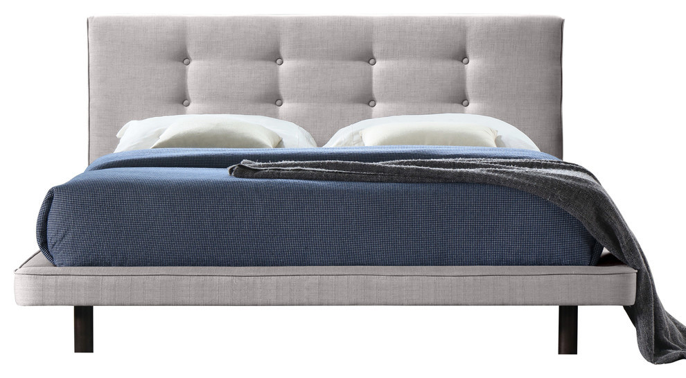 Jonesy Beige Fabric Upholstered Platform Bed With Button Tufted