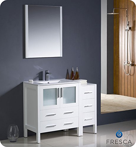 Fresca Torino 42 White Modern Bathroom Vanity W Side Cabinet