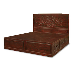 Rosewood Imperial Dragon And Phoenix Motif Platform Bed Asian