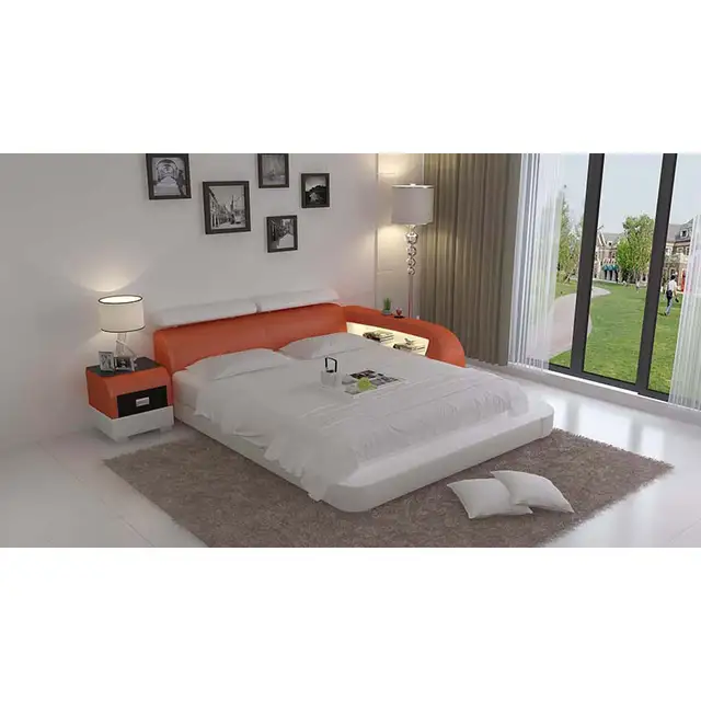 Chinese Cheap Modern Queen Platform Genuine Leather Bed In Bedroom