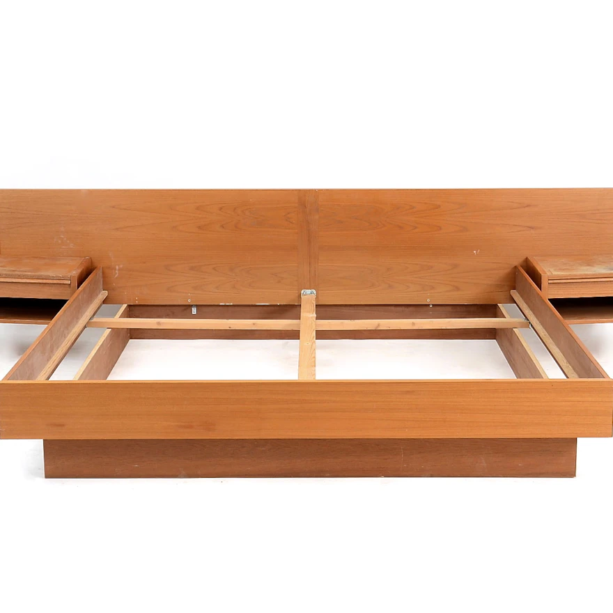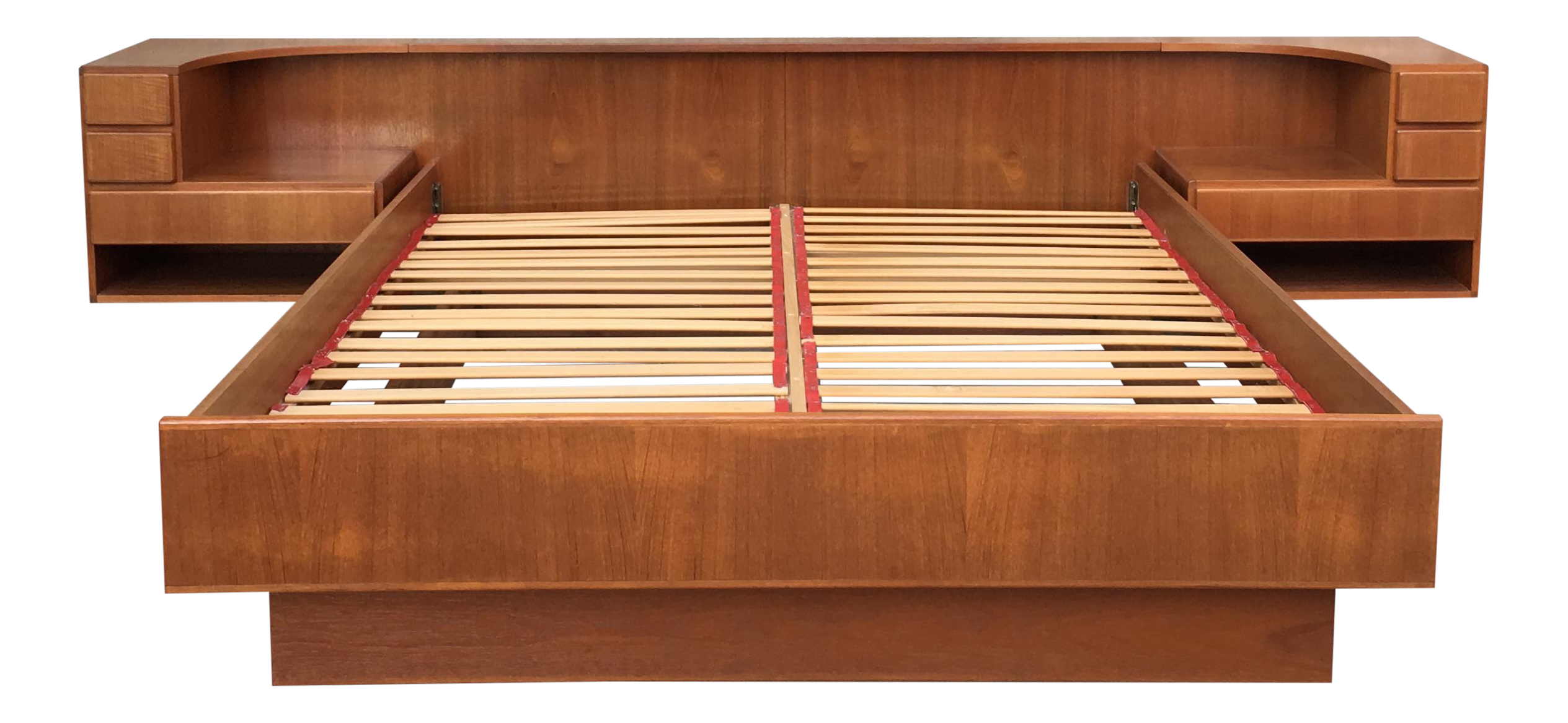 Mid Century Danish Modern Teak Bed With Floating Nightstands