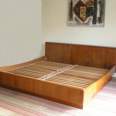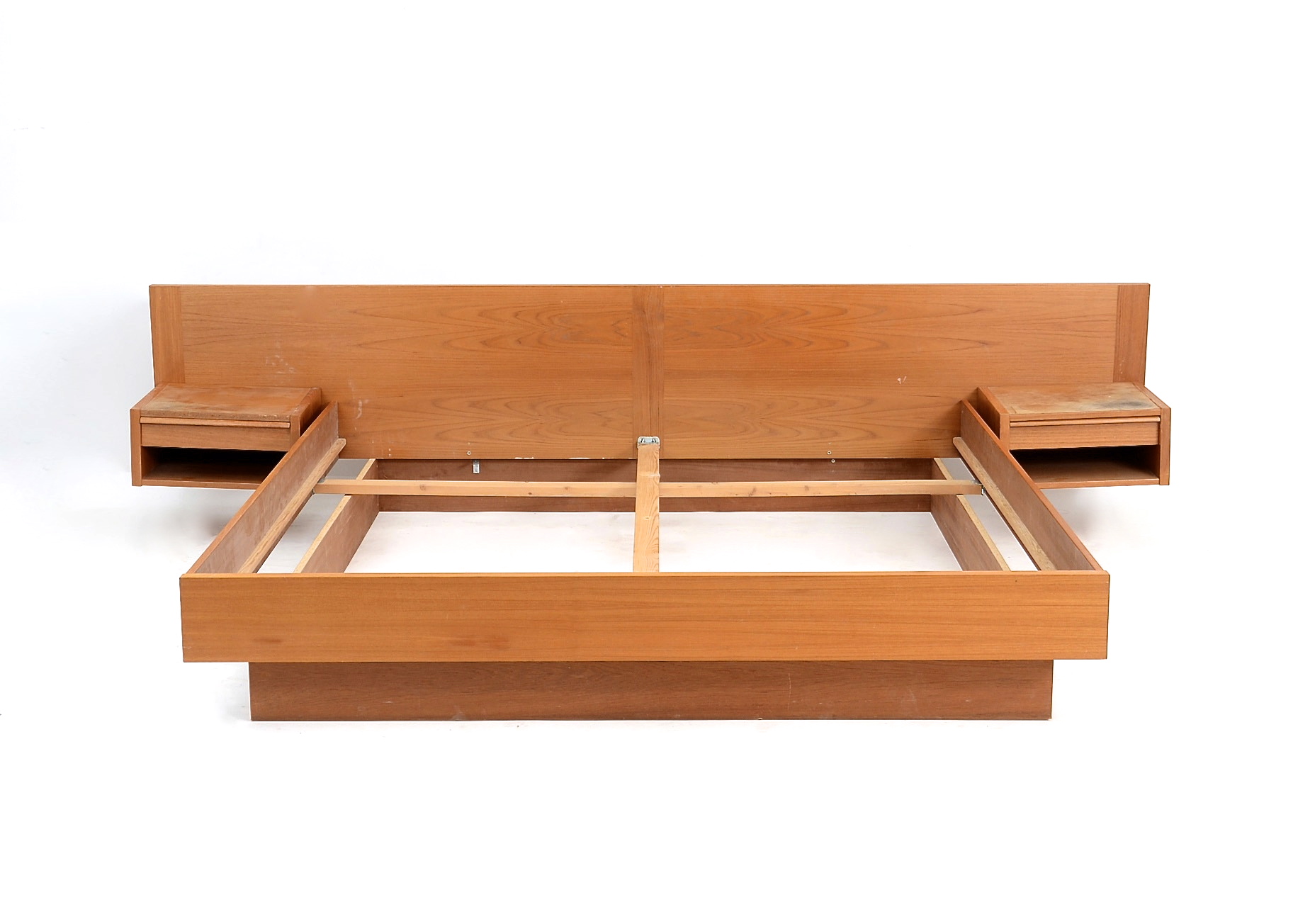 Mid Century Danish Modern Teak Queen Platform Bed Floating