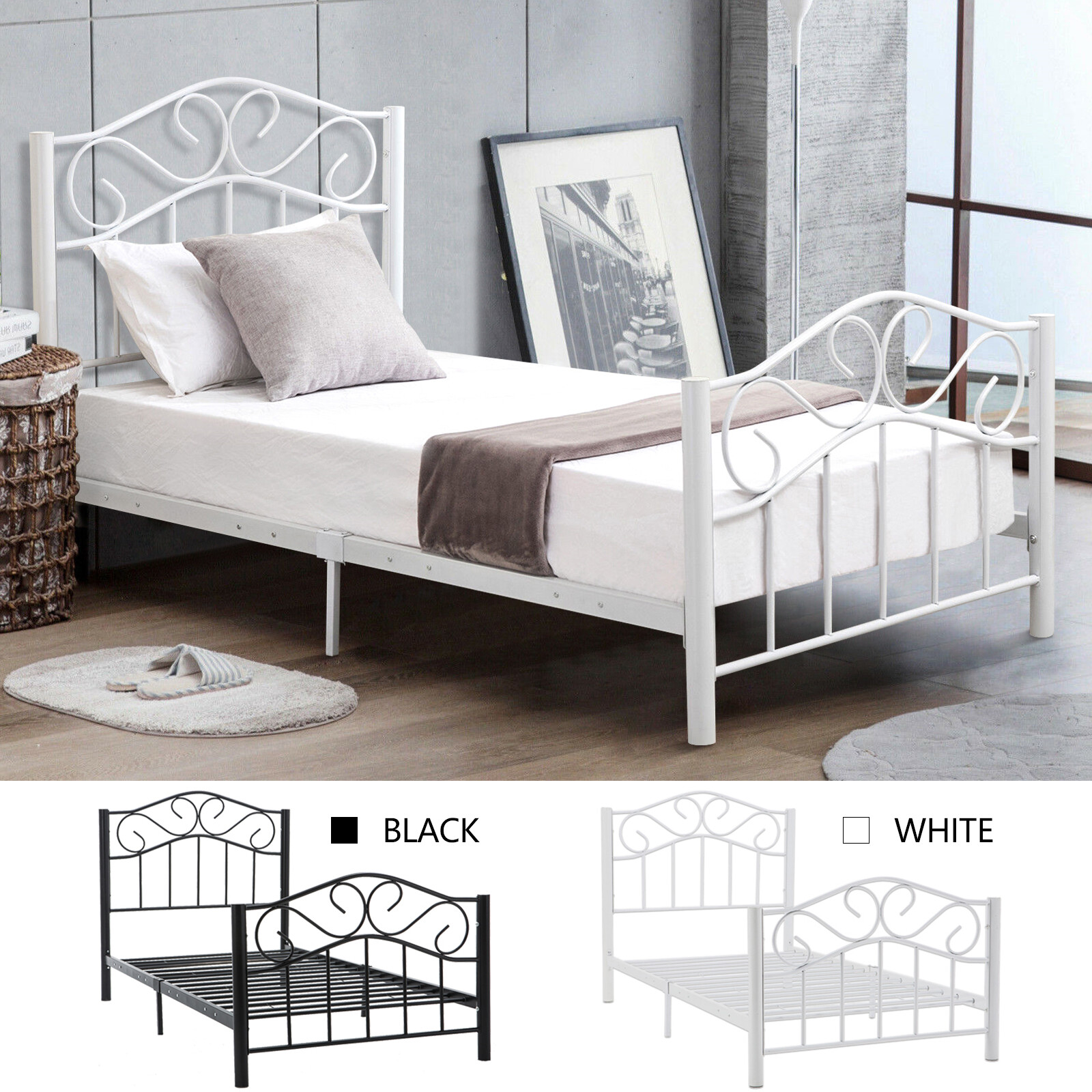 Twin Bed Frame Bedroom Platform Metal Headboard Girls Room Kids