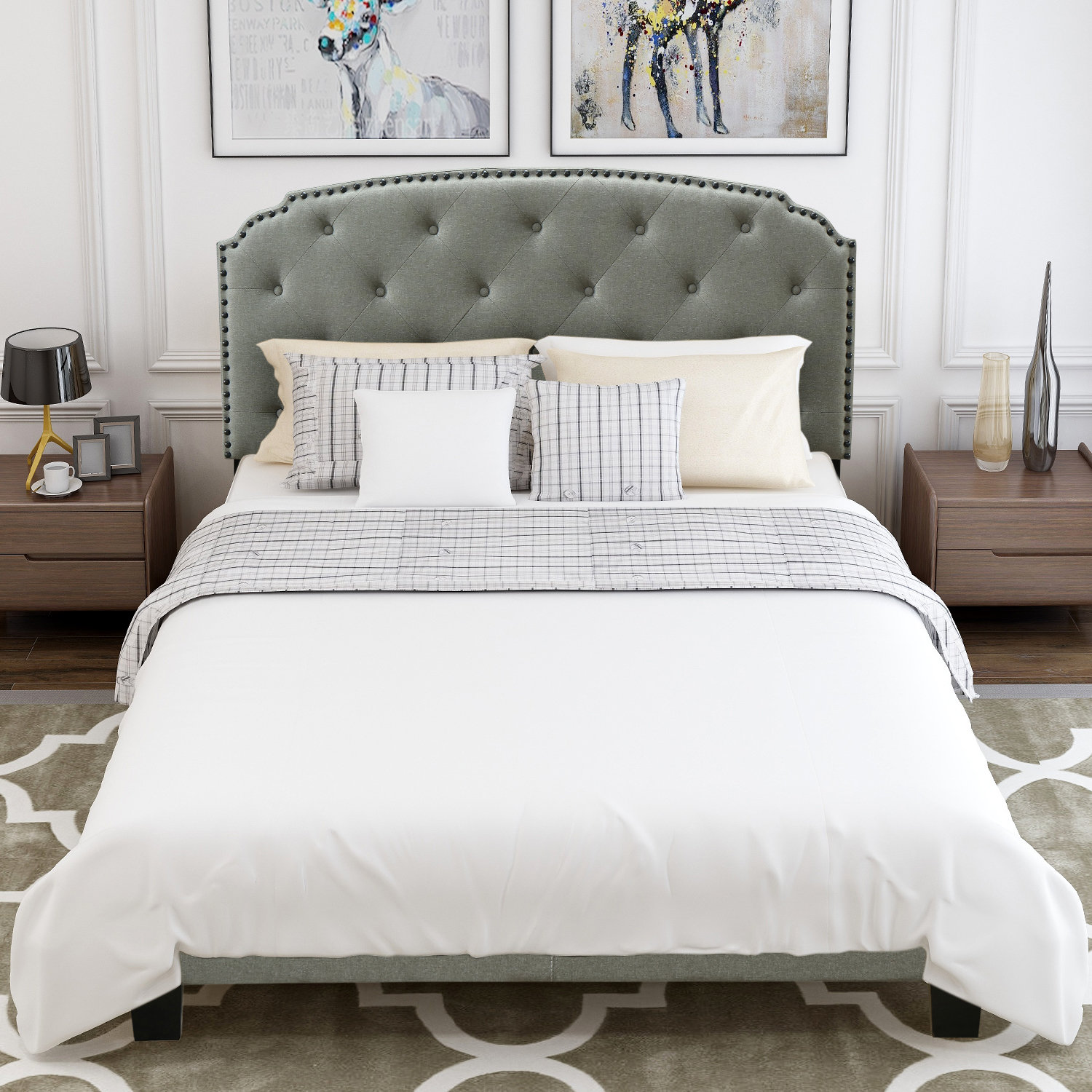 Winston Porter Upholstered Platform Bed With Rond Headboard Wood