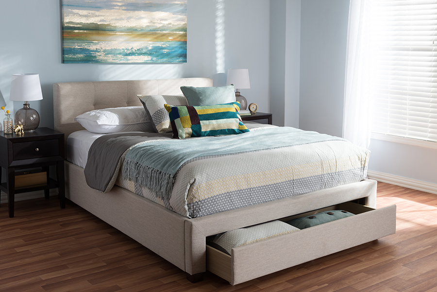 Baxton Studio Brandy Light Beige Fabric Upholstered Queen Size
