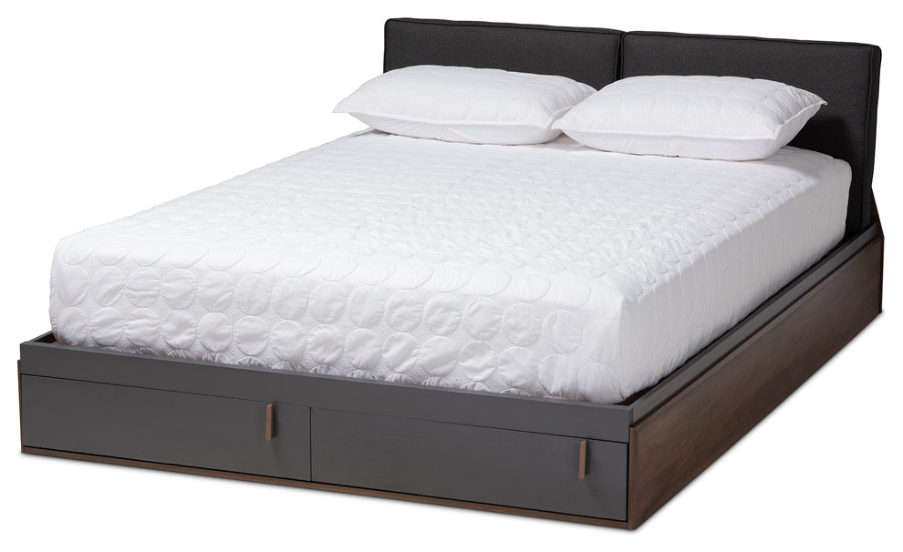 Two Tone Gray And Walnut Queen Size Platform Storage Bed Gray