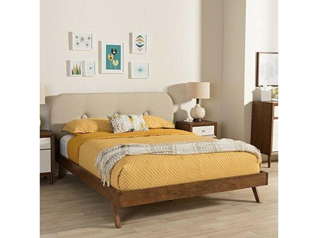 Modern Solid Walnut Wood Light Beige Fabric Upholstered King Size