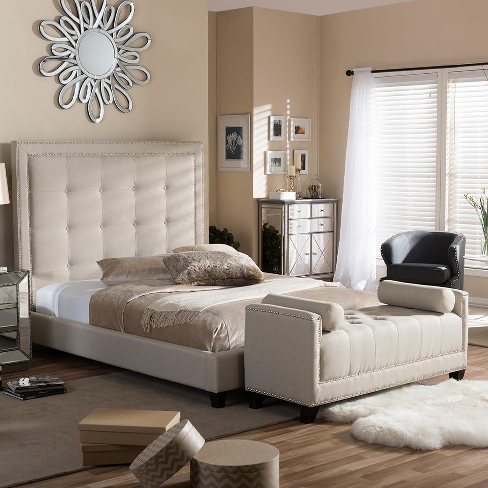 Baxton Studio Hirst Transitional Beige Fabric Upholstered King