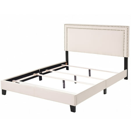 Upholstered Platform Bed Frame With Plush Headboard Full Beige