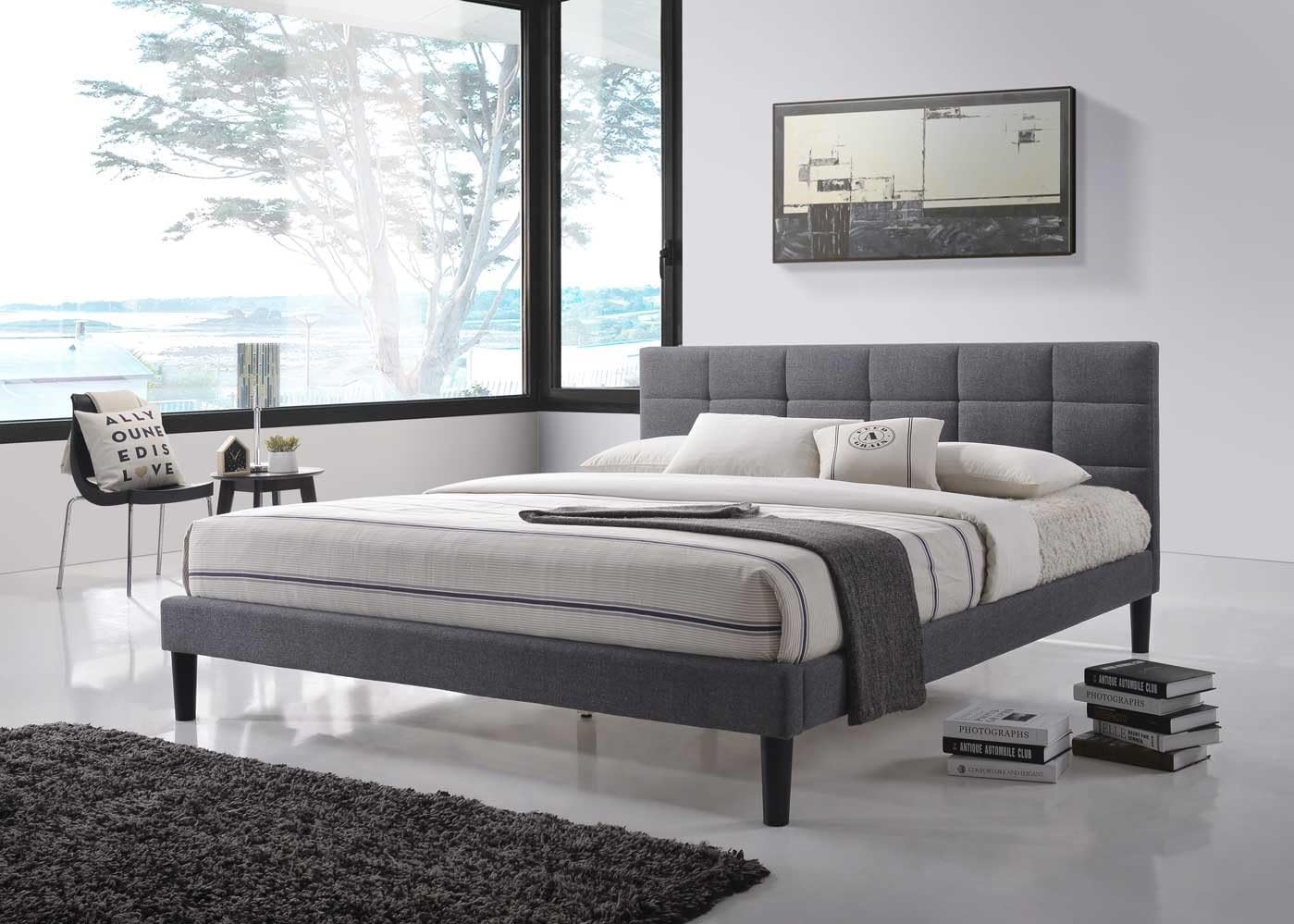 Baxton Studio Quincy Gray Linen Platform Bed King Size