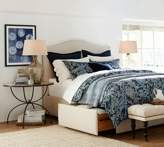 Upholstered Storage Platform Bed With Side Drawers Pottery Barn