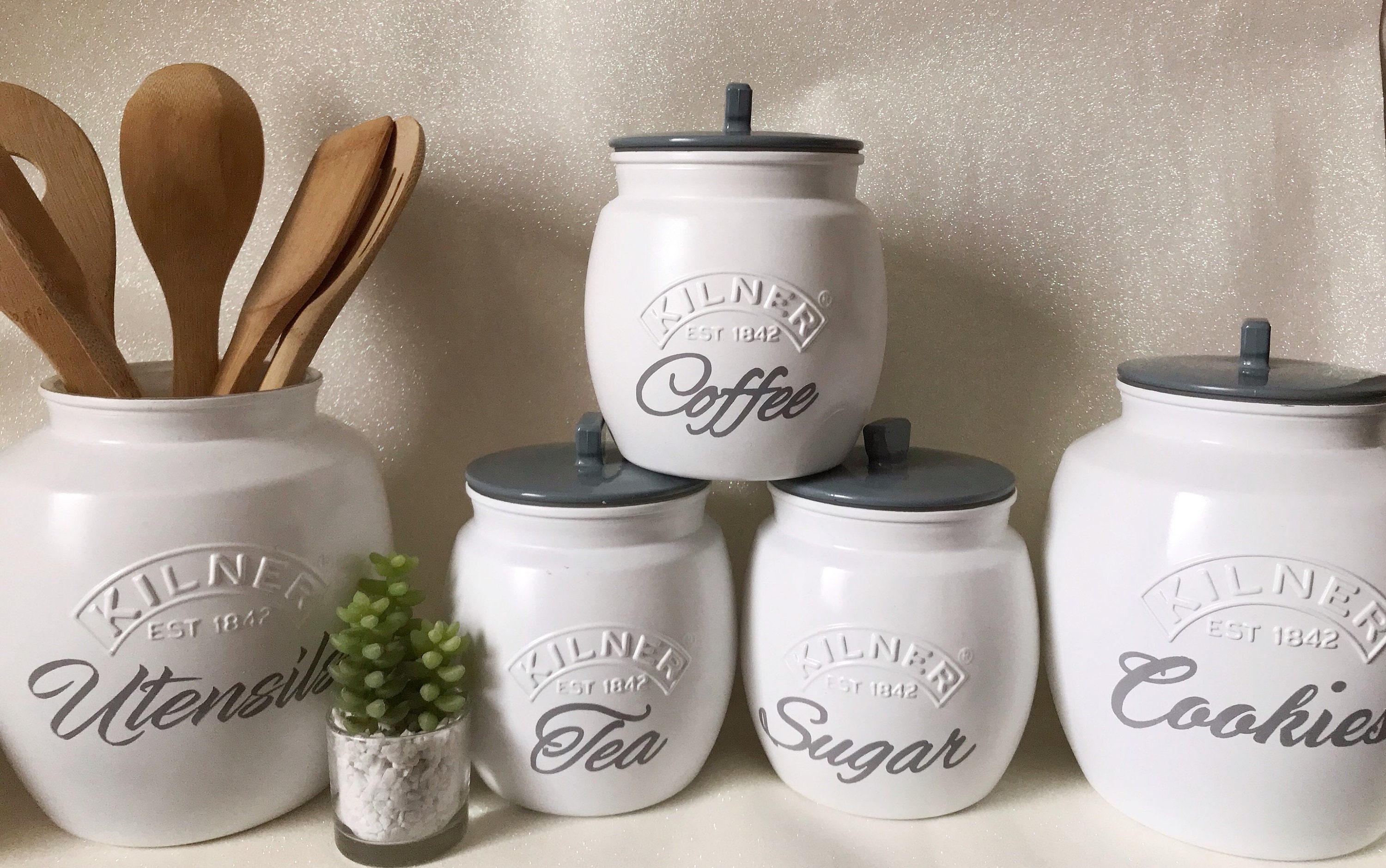 5 Piece Kitchen Set Tea Coffee Sugar Utensils And Cookie Jars Etsy