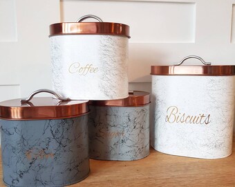Stunning Tea Coffee Sugar Tin Set With Copper Lids Biscuits Etsy