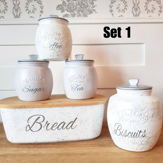 Grey Bread Bin Ceramic Storage Set 5 Piece Sugar Tea Canisters