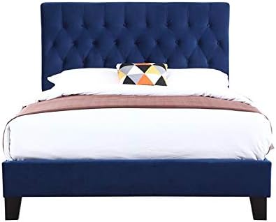 Amazon Com Pemberly Row Navy Blue Queen Size Upholstered Tufted