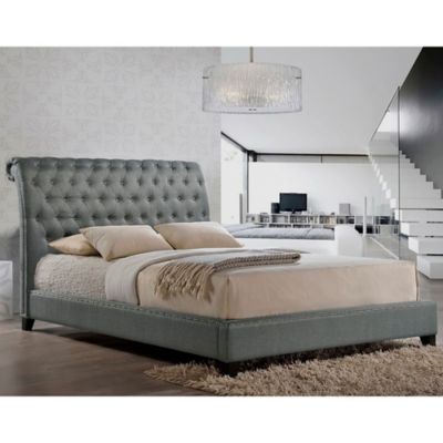 Queen Size Gray Linen Upholstered Platform Bed With Button Tufted