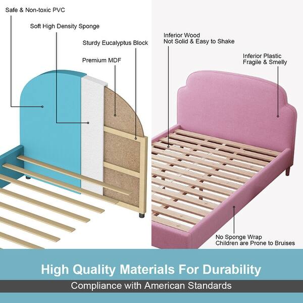 Shop Costway Kids Children Pu Upholstered Platform Wooden Bed