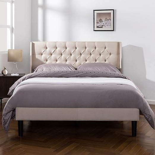 Amazon Com Zinus Upholstered Traditional Tufted Wingback Platform