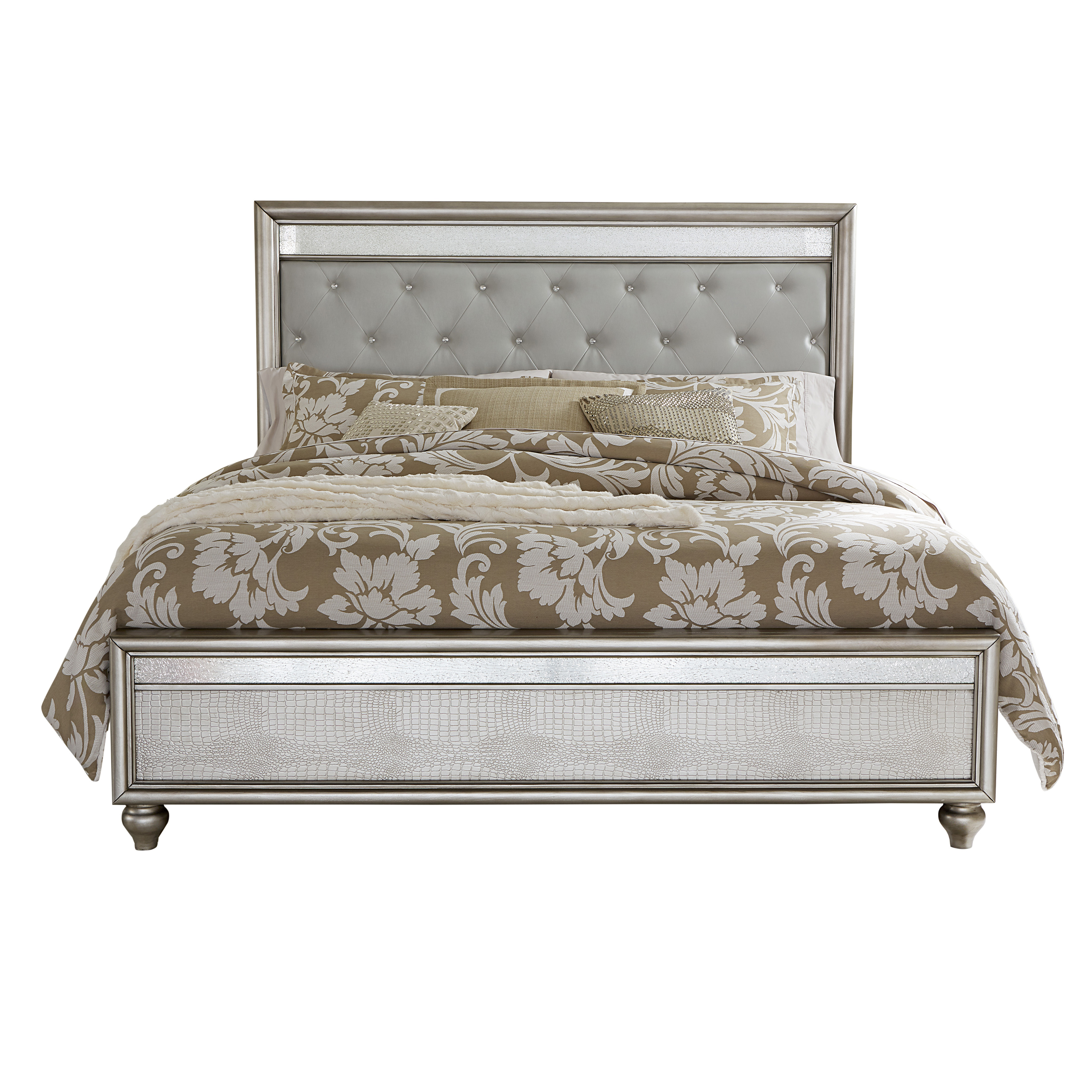Posh Silver Luxe Tufted Upholstered Platform Bedroom Set