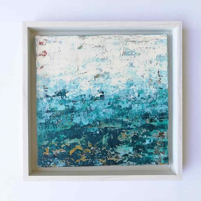 Original Blue Abstract Painting Textured Art Small Framed Art