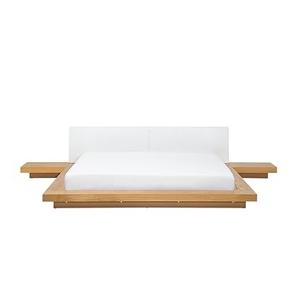 Modern Super King Platform Bed Frame 6ft Wood Veneer Side Tables