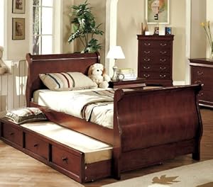 New Louis Philippe Dark Cherry Wood Twin Trundle Platform Sleigh