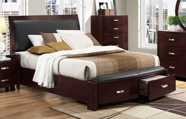 Homelegance Karla Platform Sleigh Bed W Storage Footboard In