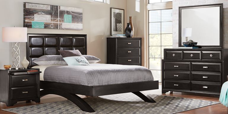 J M Furniture Black Wave Leatherette Queen Size Platform Bedroom