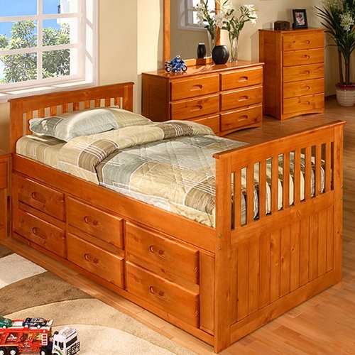 Discovery World Furniture Honey Twin Rake Bed With 6 Drawer