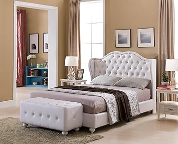 White Faux Leather King Size Platform Bed Queen Size Bed Tufted