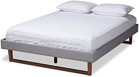 Clifford Light Grey Fabric Brown Finish Wood Platform Bed With