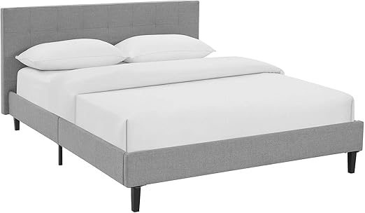 Amazon Com Modway Linnea Upholstered Light Gray Queen Platform