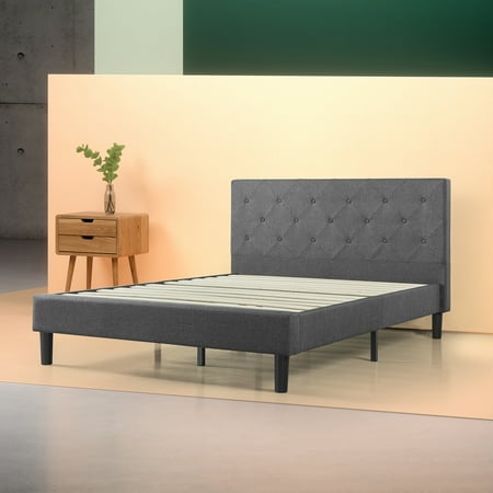 Zinus Shalini 41 Upholstered Diamond Stitched Platform Bed Dark