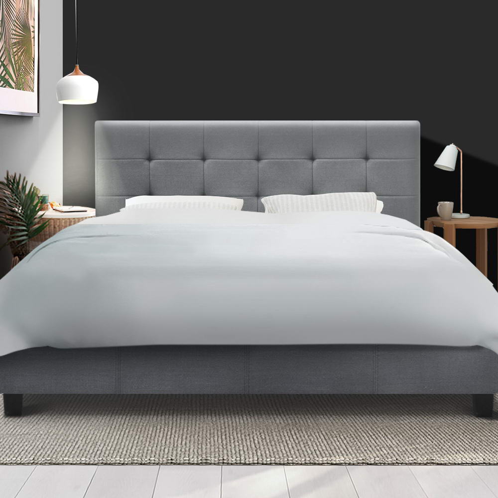 Artiss Double Full Size Bed Frame Base Platform Grey Fabric Wooden Soh