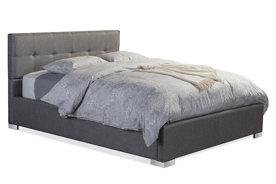 Baxton Cf8774 Grey King Brandy Grey Fabric King Platform Bed With