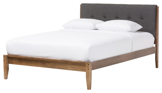 Leyton Mid Century Modern Gray Fabric Upholstered Platform Bed