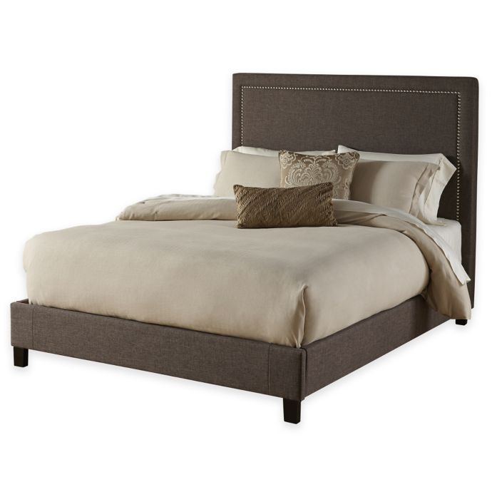 Pulaski Square Nailhead Upholstered Platform Bed In Chocolate