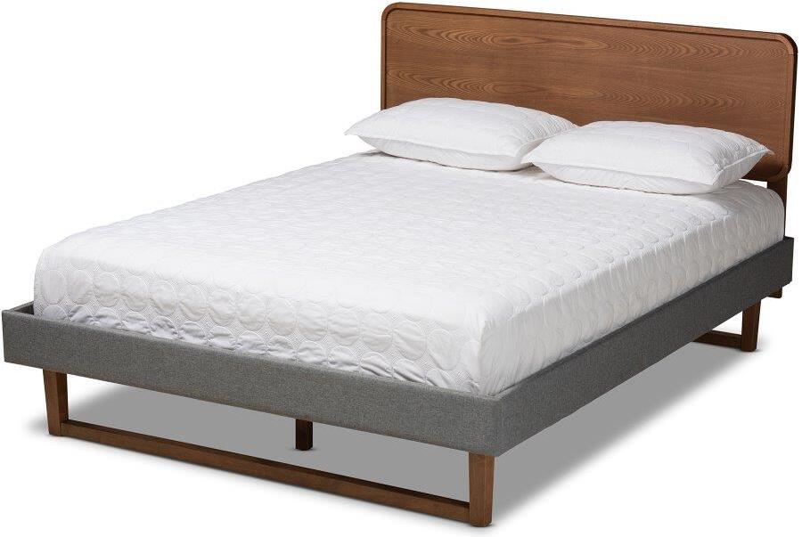 Queen Size Modern Low Profile Grey Upholstered Platform Bed Frame