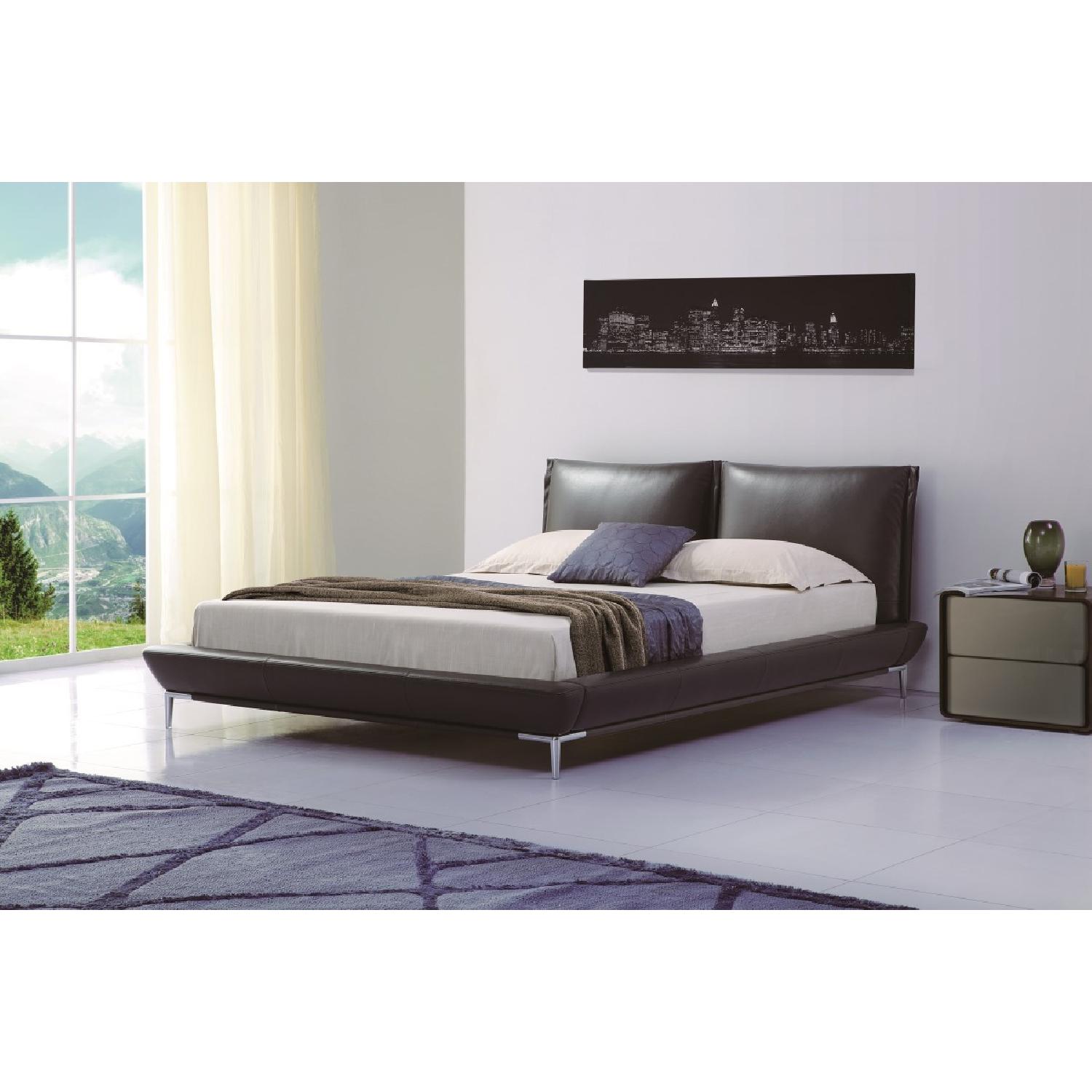 Queen Size Modern Full Leather Platform Bed W Padded Headboard In